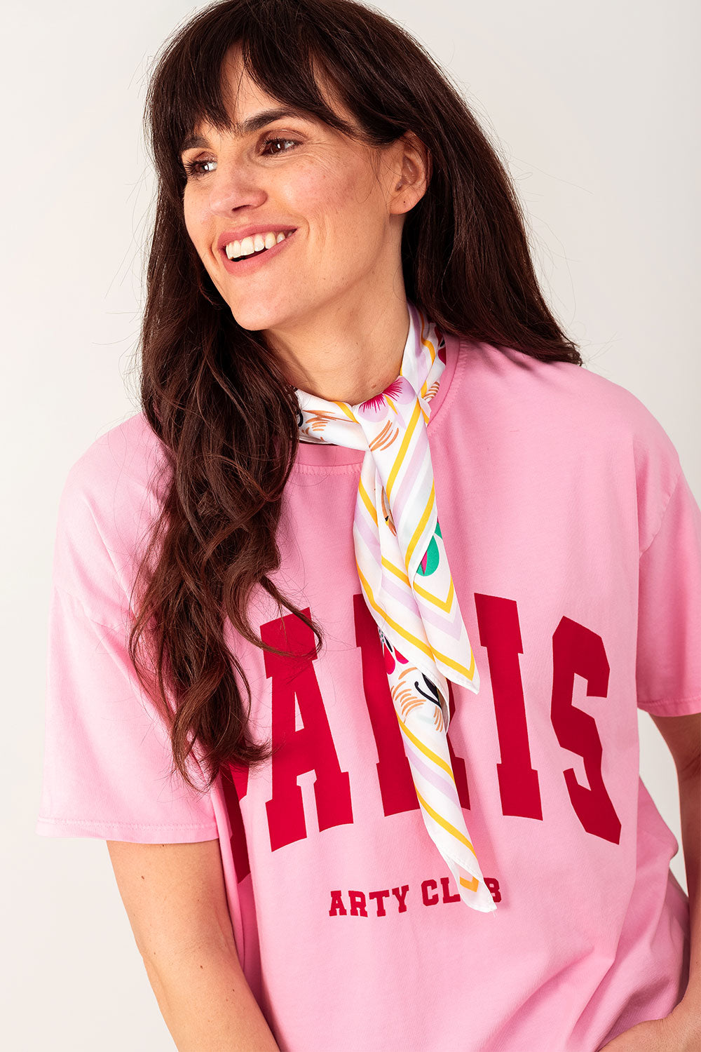 Rechtstreeks uit de nineties is daar de tiny scarf: een dun sjaaltje...