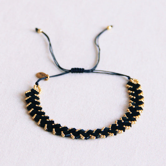 Bazou | Weefarmband zigzag - zwart/antraciet/verguld