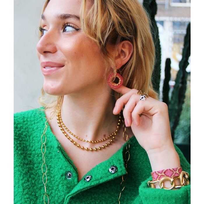 Bazou | Kralenarmband van hartvormig hars XL - bruin