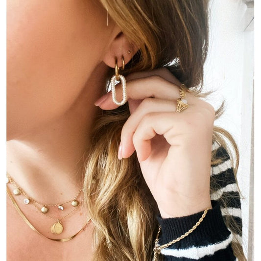 Oorring met edelsteentjes, facetjes en kettinkje - nude peach