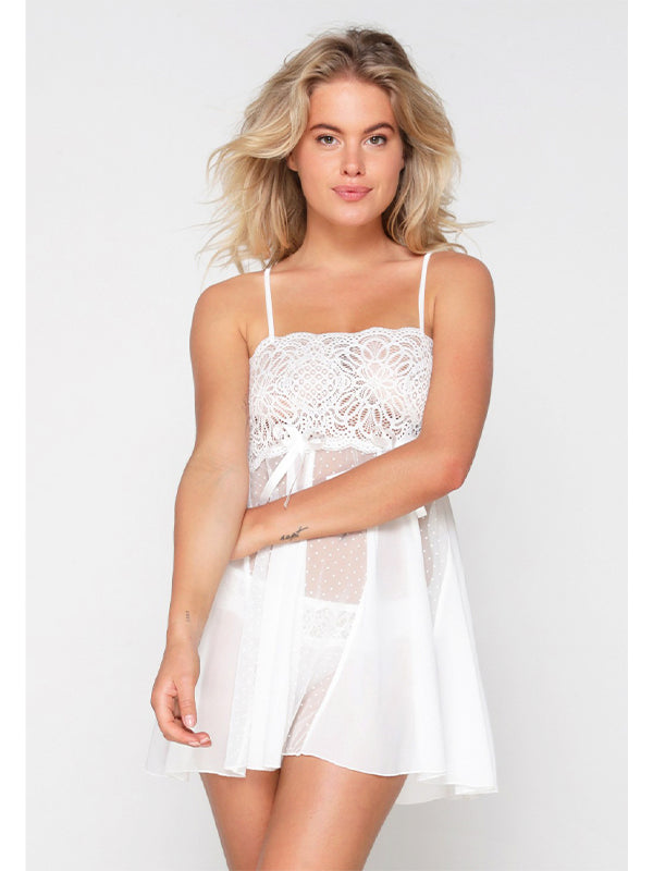 Deze babydoll is gemaakt van zachte materialen als kant en mesh en is semi-transparant