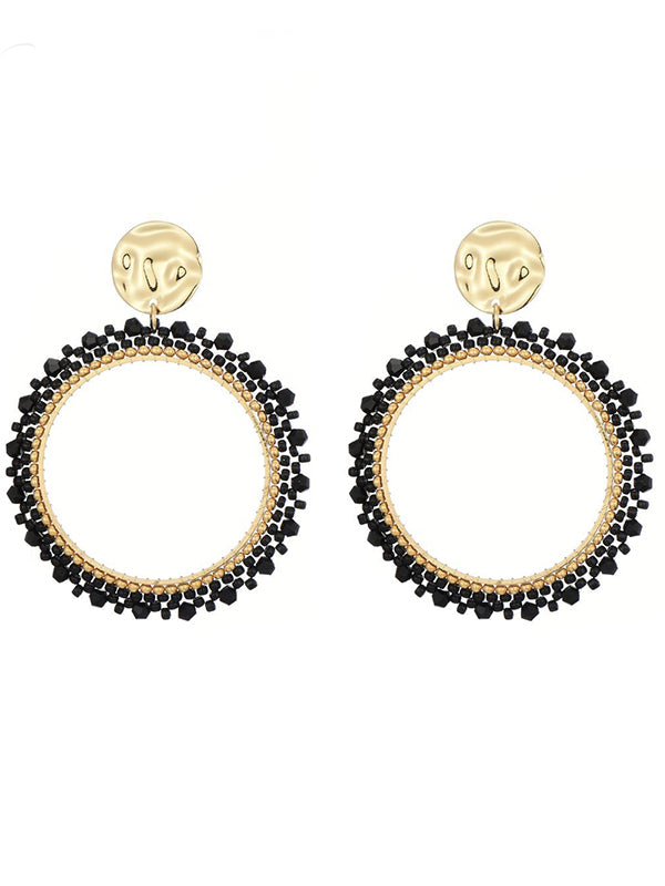 Goudkleurige oorbellen met zwarte miyuki beads