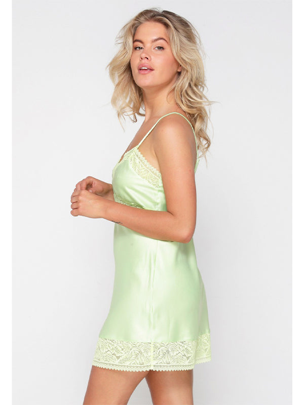 Deze groene serie is een echte uitblinker. Deze jurk is afgewerkt met uniek kant aan de voorkant rond de halslijn, onder de borsten en aan de onderkant