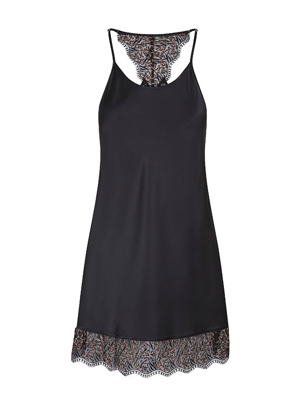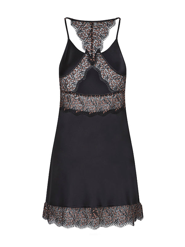 In love with embroidery! Deze zwarte chemise heeft een satijnen look en is langs de onderkant en op de rug afgewerkt met borduursels in koper kleur.