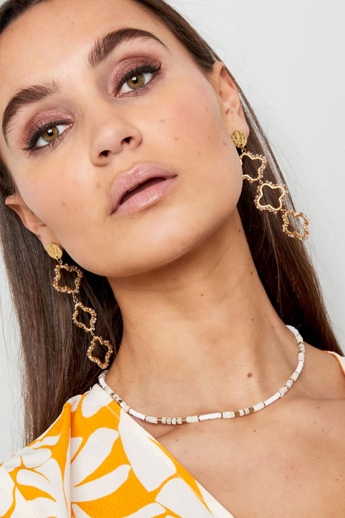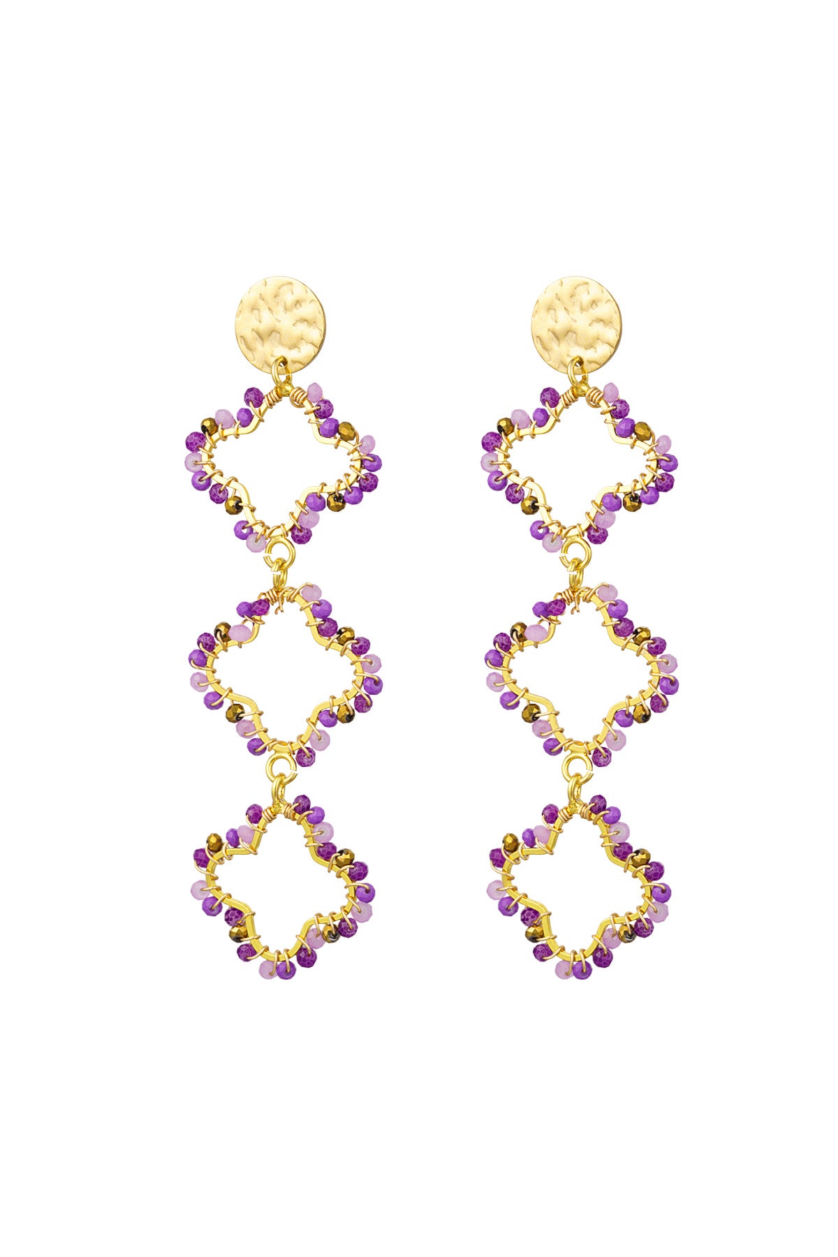 Hoe tof zijn deze statement oorbellen met drie klavers gemaakt van kralen in de kleur paars. Dankzij deze prachtige statement oorbellen van 9 cm steel jij de show tijdens dat leuke feestje! Oorbellen drie klavers met kralen is gemaakt van Stainless Steel in combinatie met kristalkralen, superleuk!
