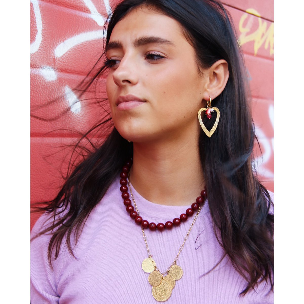 Oorbel met een cluster van edelstenen en een open hart - roze mix