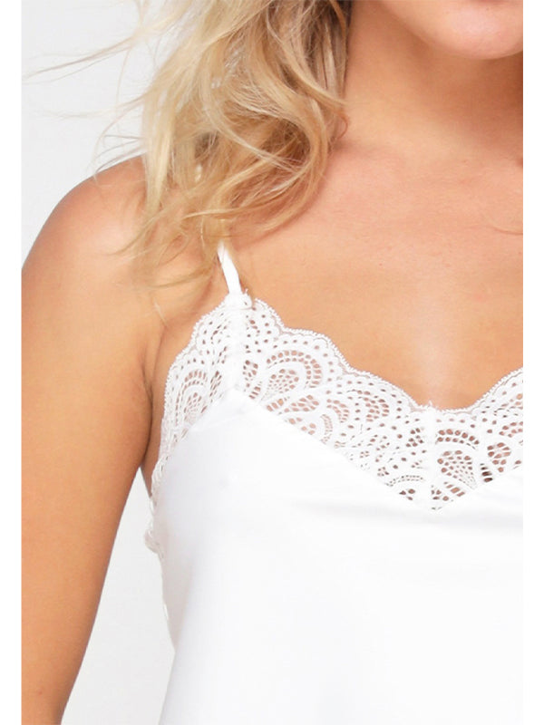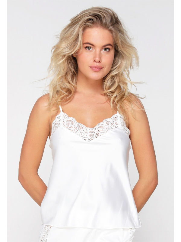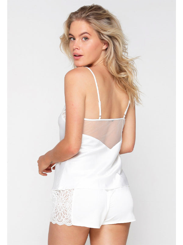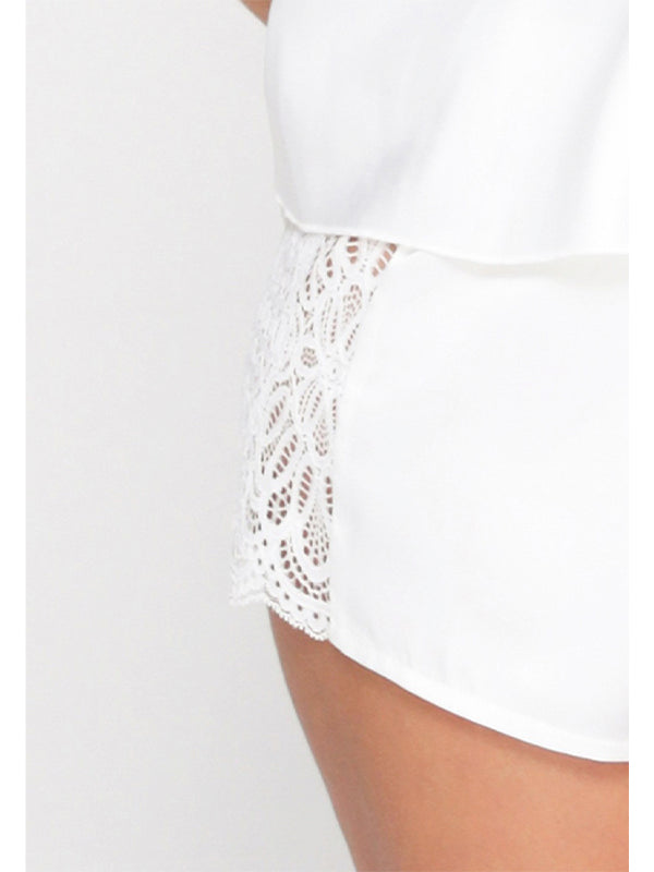 Deze shortama Snow White heeft een satijnlook en is langs de halslijn afgewerkt met kant.